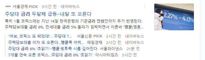 주택담보대출금리 6%, 신용대출금리 5% 시대가 임박한겁니다.