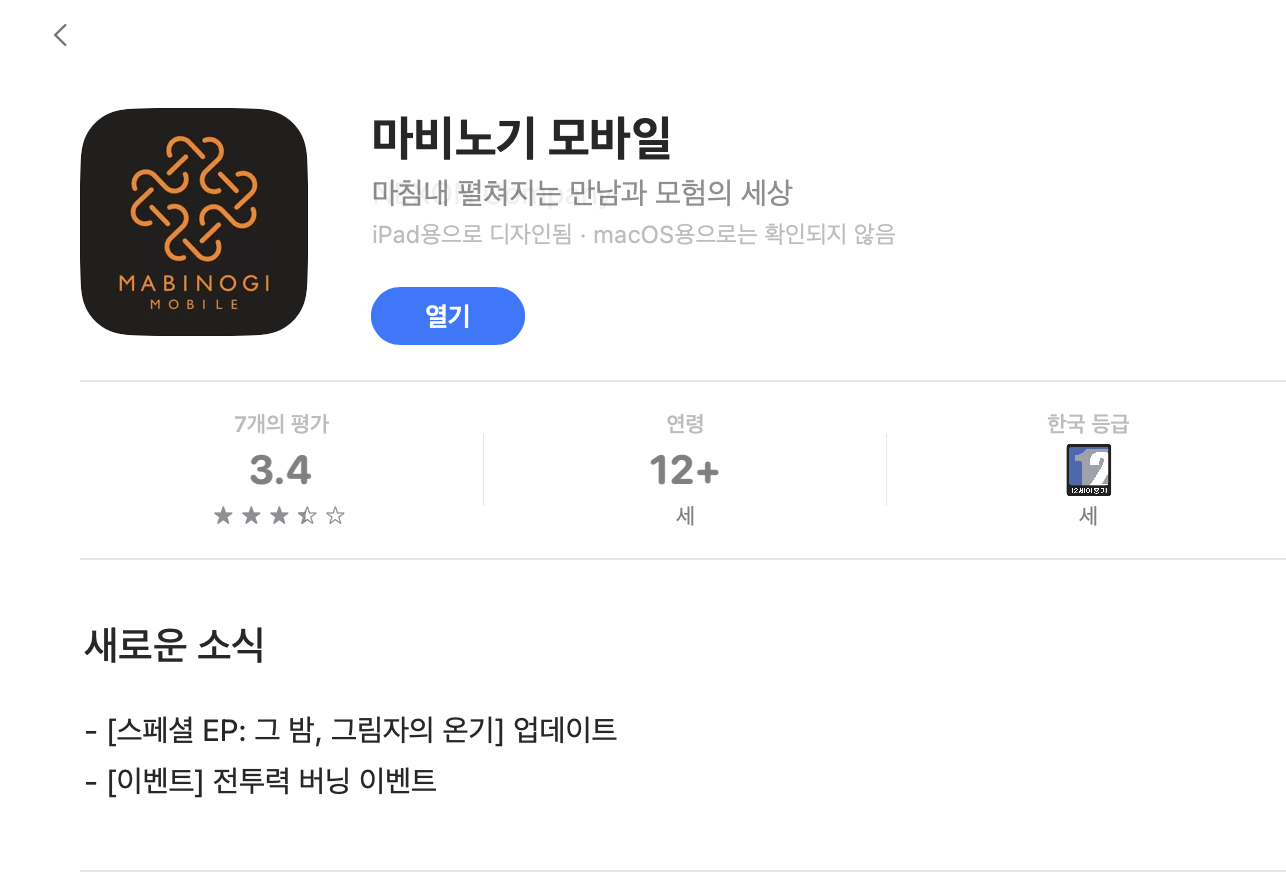 결론부터 말하면, M1 칩 이상의 애플 실리콘(Apple Silicon)이 탑재된 맥북이라면, 앱스토어에서 마비노기 모바일을 정식으로 다운로드하여 플레이할 수 있다.