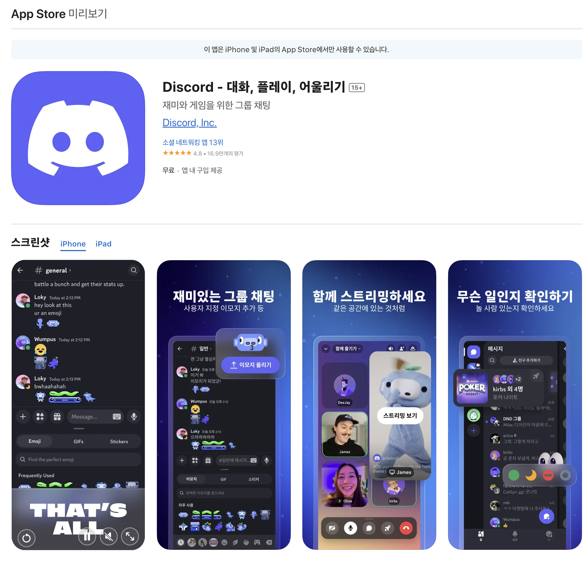 이건 메신저라기보단 '커뮤니티 툴'에 가깝다. 1:1 대화나 서너 명의 소규모 그룹 채팅도 가능은 하지만, 그런 용도로 쓰기에는 UI가 너무 복잡하고 무겁다. 부모님께 "디스코드 서버 파서 얘기해요"라고 말하는 건 상상하기 어렵다. 초대를 기반으로 한 폐쇄적인 구조도 불특정 다수와 가볍게 연결되는 일반 메신저와는 결이 다르다.